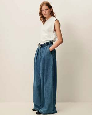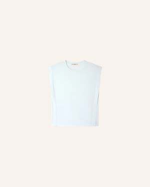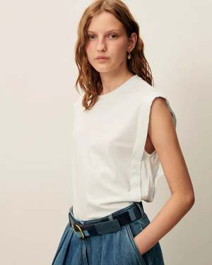 Sleeveless pleated T-shirt in pigment-dyed jersey, hand-crafted and dyed in Portugal. - Round neck. - Deep armholes. - Wide pleats at the sides. - 100% cotton - Made in Portugal
