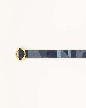 Patchwork belt with a sliding buckle in cow leather, cow leather suede, and textile. The leather used to make this garment was treated in an LWG-certified tannery, ensuring adherence to strict social and environmental practices and the use of non-harmful products. - Bronze-finish buckle - Width: 3.5 cm - 40% Cow leather, 40% Cowhide leather, 20% Cotton - Made in India