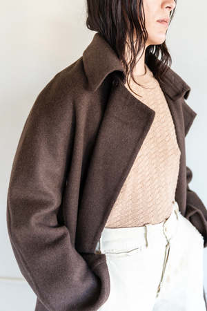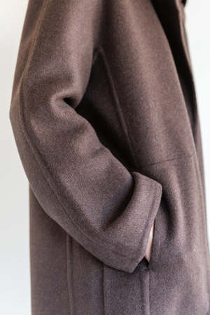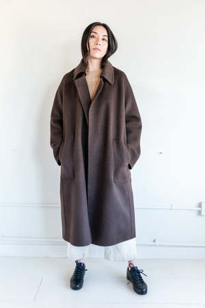 Seya's long coat, is double faced and layered with extra fabric in the front, giving it an easy and effortless look, but what it truly is - is a blanket. Single button closure on the inside front, removable collar, unisex. This yak wool, known as a high end material is luxuriously doubled. This fabric represents Seya's commitment to finishing. The double face finish has a high grade of brushing and special treatments are applied to both sides to maximize the essence of animal hair. This translates as a smooth surface and elegant gloss. The fabric is undyed and totally natural, thus the fibers have not been damaged at all and you can feel the softness. Seya, a refined collectsion of artisanal clothing, helmed by Keiko Seya. This Paris-based label offers a curated range of items crafted from natural and lasting materials. SEYA produces its own silks, linens, cotton, and other luxurious fabrics for its ready-to-wear collectsion, translating inspiration from travels and cultural exchanges through "mineral shades, immemorial shapes and noble materials." - 100% undyed yak wool. - Dry clean only. - Ethically made in China.