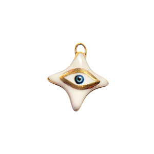Available styles: Evil Eye, Mama, Evil Eye Star, Forget, Love You, F*ck Em', Snoopy, Mi Amor, XO, and Rock On. 14k Gold Plate | Hand-painted Porcelain. Made in the States.