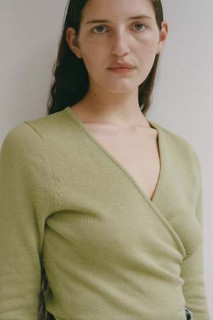 Universally flattering and effortless to wear, the Elsa Top is a wrapping top featuring a transitional, all-season cotton yarn that is not sheer and has beautiful texture and breathability. The Elsa Top features a dancewear-inspired cut with length sleeves and an adjustable V neckline. A top we reach for again and again that has a flattering fit and all-season round wearability. - 50% Tanguis Cotton, 50% Viscose - Made in Peru Sustainability Tanguis cotton is coined "King Cotton" for creating soft yet strong fibers that are often found naturally in a pure white hue in nature. The plant itself is native to South America and is resistant to common plant diseases that decimate traditional cotton plants. This plant requires no harsh pesticides and is naturally tolerant to challenging weather, producing abundant yields and strong, disease-free crops, making it a top choice for farmers in Peru. SM knitwear is produced in Peru by a workshop started by two women who each spent ten years working in the local knitwear market before beginning their own business. They maintain strong relationships with their clients and their local artisans to execute beautiful, quality garments. Their company respects their artisans, pays them in advance for their time, and partners with them on all aspects of their work. Since 2015, SM has maintained a strong partnership with them, and are currently working together with the workshop and their GOTS-certified yarn mills to innovate solutions to avoid yarn waste. SM is proud to continue to work together with this small, women-run workshop and to honor the skills and traditions of knitwear production in Peru. Sizing info Fits true to size and is easy to adjust to create a perfect fit. S- 35" chest, 17" length, 21" arm length M- 37" chest, 17.5" length, 21" arm length L- 38" chest, 17.5" length, 22" arm length