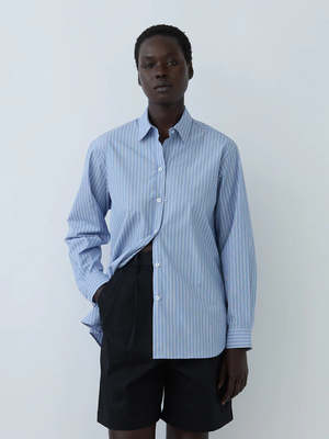The Classic Button Down is the quintessential oversized, boyfriend fit button down. Crafted in Japanese cotton poplin, it features a structured collar, cuff, oversized fit, and curved hem. Perfect to style alone or layered. 100% Cotton Poplin XS: 42" chest, 28" front length, 29.5" back length, 22.5" arm length S: 44" chest, 28.5" front length, 30" back length, 22.5" arm length M: 46" chest, 29.5" front length, 31" back length, 23.5" arm length L: 47" chest, 30" front length, 31" back length, 24" arm length Hand wash, lay flat to dry. Made in the USA.