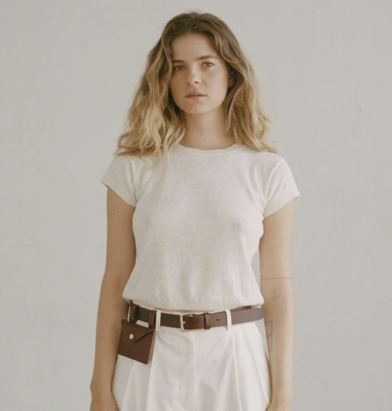 Crafted in an elevated yet casual cotton and linen knit that is textured, soft, and breathable. Reminiscent of the perfect '90s-cut baby tee.