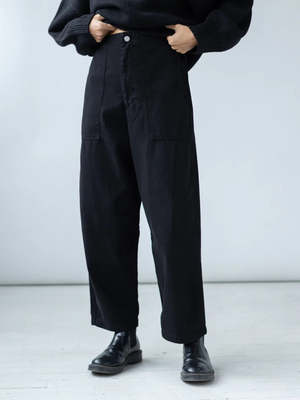 The Painter Pant by Shaina Mote is crafted from 100% cotton herringbone and made in the USA. Size + Fit XS: 24"-28" waist (relaxed-stretched), 45" hip, 15" rise, 26" inseam S: 26"-29" waist (relaxed-stretched), 46" hip, 15" rise, 26" inseam M: 28"-31" waist (relaxed-stretched), 47" hip, 16" rise, 27" inseam L: 31"-34" waist (relaxed-stretched), 48" hip, 17" rise, 27" inseam Care: Machine wash cold, hang to dry.