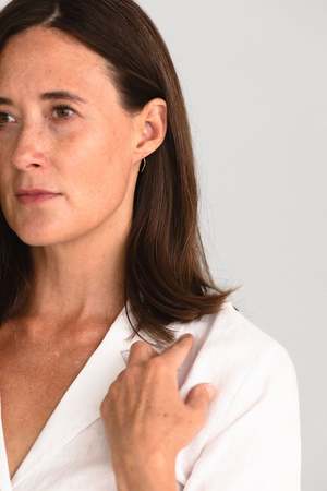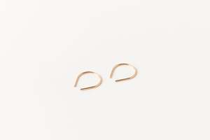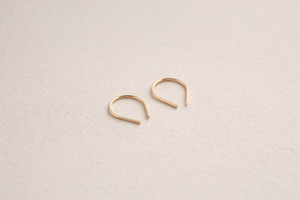 A small open arch threaded through the ear, the Moab is designed for everyday wear. One continuous line of high-polish 14k gold fill wire is shaped into a soft arch and threaded through the ear with no clasp or hardware. It moves with you while remaining lightweight and structured. At 1/2 inch, it is compact and sits close to the ear. Stack it with studs, pair it with the Telluride, or wear it alone. Handcrafted in 14k gold fill. 1/2" arch threader. Sold as a pair.