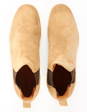 The Gore Chelsea Boot in Sand by Shoe The Bear is an updated version of a classic Chelsea Boot. Upper made of 100% fine suede Sole made of genuine crepe rubber Skin lining on inside Elastics at each side Made in Portugal