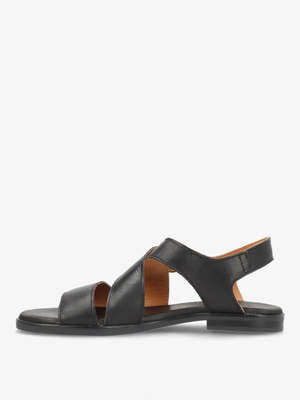 The Mila Sandal from Shoedesign Copenhagen is a flat, modern style featuring wide crisscross straps and a contrasting gold-color buckle. The soft leather and flat sole ensure a comfortable fit. - 100% Leather - Adjustable strap - Regular fit