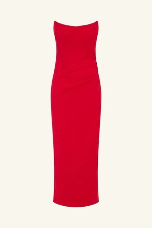 Corset maxi dress in a premium stretch cotton blend. - Premium stretch cotton blend - Strapless curved neckline - Panelled corset with boning - Centre back split - Invisible zip at centre back - Draped maxi length skirt with tucks - Medium weight, stretch woven - Lined - Care: Dry clean only. Cool iron if needed on reverse side with protective cloth. Main: 50% Cotton, 48% Nylon, 2% Elastane; Lining: 59% Cotton, 36% Nylon, 5% Elastane Fitted style; designed to fit close to the body. Model is wearing a size US2 and measures: Height - 179cm (510.5), Bust - 74cm (29"), Waist - 53cm (21"), Hips - 88cm (34.5"). For more sizing details, please refer to the measurements in the size guide below.