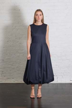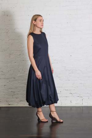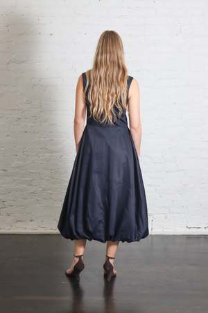 Fit and flare midi dress from Shwetambari with a bubble hem. Made of 100% cotton, this dress features hidden side seam pockets and a back zip for ease. Made in India.