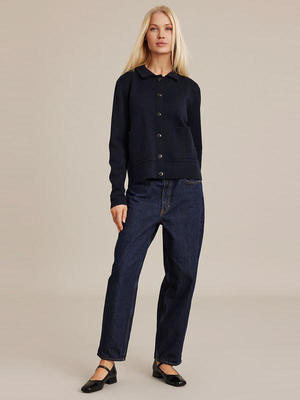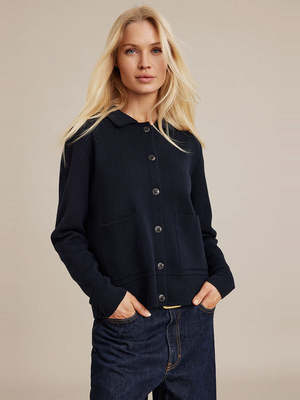 Experience refined comfort and style with the long-sleeved Kaja Cardigan by Sibin Linnebjerg. Made from a luxurious Merino blend, this cardigan features a classic collar, two front patch pockets, wide cuffs and hem, and a front button closure. Ideal for layering over your favourite T-shirt, it combines comfort with understated elegance.