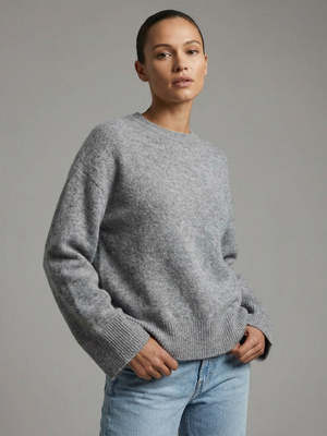 Crafted in the softest alpaca wool blend, Sibin Linnebjerg's Pixie Jumper is a cosy blend of comfort and style. It features a round neck and long sleeves with a relaxed fit. The lovely, relaxed style is ideal for pairing with your favourite denim and boots or over maxi skirts or dresses to add a cosy layer in colder weather. Details - Round neck - Long sleeves - Ribbed cuffs and hem - Relaxed fit - Grey Fabric & Care Composition: 48% baby alpaca, 30% polyamide (20% is GRS recycled), 20% wool, 2% elastane. Care: 30C wool machine wash. Do not tumble dry. Dry flat.