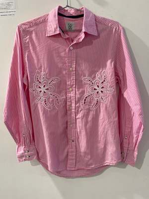 A floral eyelet pattern mirrored across the front of our Greco shirt elevates the timeless dress shirt with a hint of femininity. Its the easiest way to take your outfit from classic to special without any effort. Made in USA