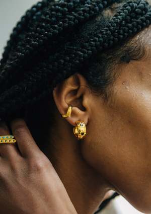 The Eve Hoop Earrings are sweet and fearless. They are a tribute to the first female and my first baby girl, Opal Eve. - Gold Vermeil & Black Spinel - 1/2" Diameter, 1/4" Wide