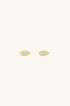 The evil eye is a good luck symbol worn to ward off negativity, jealousy, and misfortune. These dainty evil eye studs are the perfect complement to any ear stack. March Birthstone Gold Vermeil & Aquamarine 1/4"