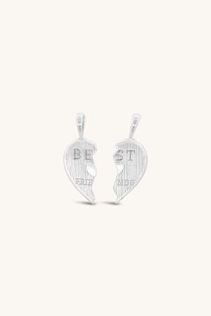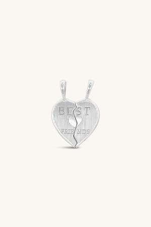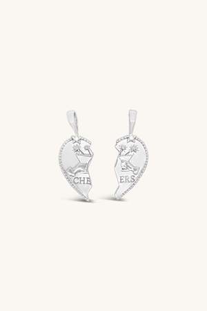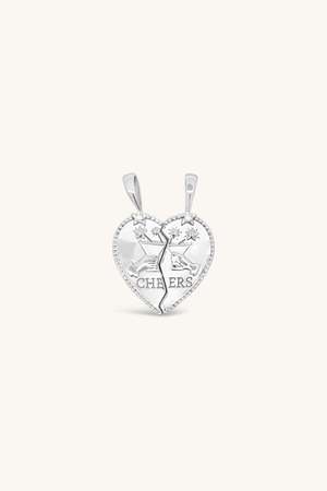 This sweet little throwback to the BFF necklaces of the 90s says "CHEERS" on one side and "BEST FRIENDS" on the other. Wear both charms together or give one to the one you love like a sister. Sterling silver and white topaz. Pendant measures approximately 1".