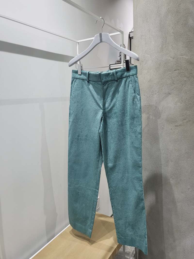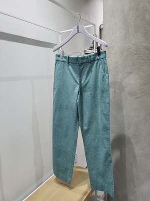Pressed cotton corduroy-blend pants in teal with a velvet finish, mid-rise waist, and straight-legs. Vendor Colour: Teal Vendor style: M5IC601-VORTICE Fabrication: 64% Cotton; 35% Viscose; 1% Elastane. Lining 50% Cotton; 50% Polyester. Made in Italy.