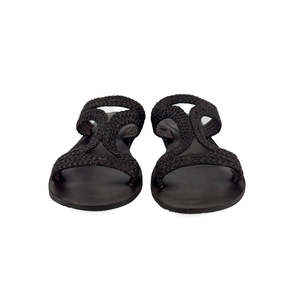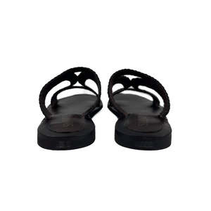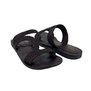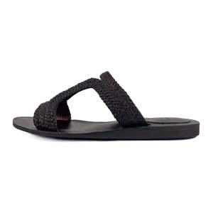 A modern, Grecian-inspired slide sandal for your summer outfits and adventures. - Woven leather upper - Height: 0.25" - Runs slightly big; if between sizes, we recommend sizing down.