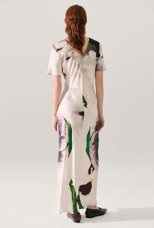 Silk Laundry bias cut dress crafted in 100% silk detailed with a round neckline with logo2 chain at the back. Cut on the bias to a fluid fit and ankle-length hemline. - Material: 100% Silk Sandwashed, 16 momme - Cut on the bias - Matte sheen - Ankle length - Round front neckline - Round back neckline with logo2 chain - Internal French seams - OEKO-TEX certified - Fits true to size - Model wears a size medium