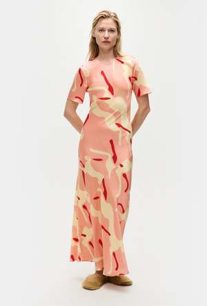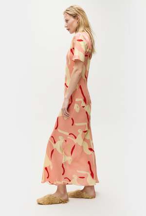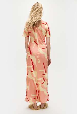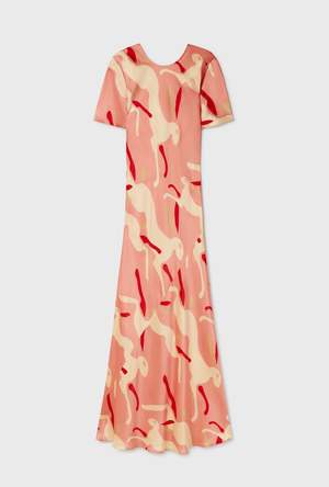 Silk Laundry bias cut dress crafted in 100% silk detailed with a round neckline with logo2 chain at the back. Cut on the bias to a fluid fit and ankle-length hemline.