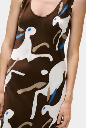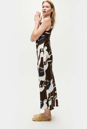 Silk Laundry Scoop Neck Dress in silk satin, tailored with a bias cut for a regular fit. Sleeveless with a scoop neckline, flowing into an ankle-length hem.