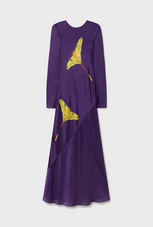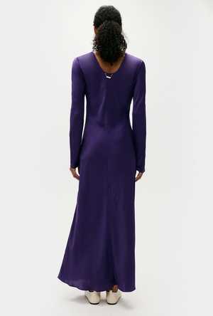 Silk Laundry Full Sleeve Bias Dress in 100% silk with long sleeves. A round back neckline and bias cut offer an elegant, ankle-length profile.