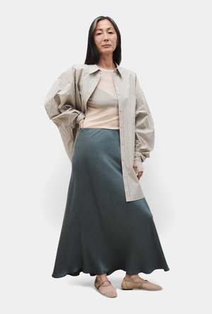 Silk Laundry bias skirt crafted in 100% silk, detailed with an elasticated waistband. Cut on the bias with an ankle-length fit.