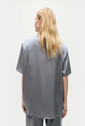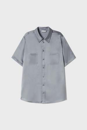 Silk Laundry short sleeve shirt crafted in 100% silk detailed with a button-down front and utility pockets. Designed to echo an original menswear style for a relaxed fit.