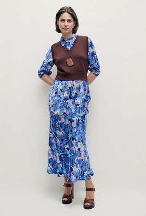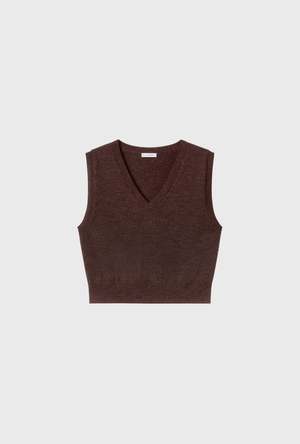 Silk Laundry V-Neck Sweater Vest, made from 100% merino wool. Features a sleeveless, cropped silhouette with a ribbed neckline and hem. More details - Material: 100% Merino Wool - V neckline - Sleeveless - Cropped length - Ribbed neckline and hem - Fits true to size - OEKO-TEX certified - Model is 177cm tall and wears a size medium Care information - Hand wash in cold water - Use delicate detergent - No bleach or fabric softeners - Do not soak - Line dry in shade - Do not tumble dry - Dry clean if necessary - Please wash no more than necessary to increase the life of your garment
