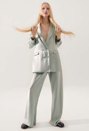 Silk Laundry blazer crafted in 100% silk detailed with a deep collar, silk-covered buttons and pockets. Cut with a loose silhouette for a relaxed fit. - Material: 100% Silk, 19 momme - Deep V collar - Glossy sheen - Silk covered buttons - Unlined for drape - Internal French seams - OEKO-TEX certified - Fits true to size - Model wears a size small