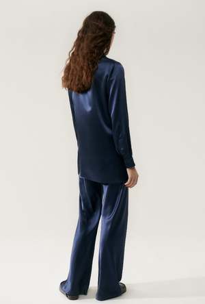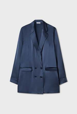 Silk Laundry blazer crafted in 100% silk detailed with a deep collar, silk-covered buttons and pockets. Cut with a loose silhouette for a relaxed fit. - Material: 100% Silk, 19 momme - Care: Hand wash in cold water or dry clean - Glossy sheen - Unlined for drape - Deep V collar - Silk covered buttons - Internal French seams - OEKO-TEX certified - Relaxed fit - Typhaine is 178cm / 5'10 and wears a size small