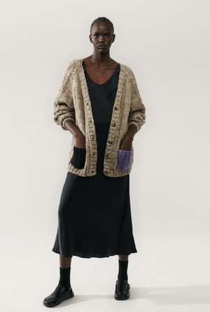 Our first knitted piece was made entirely by the skilled hands of the women of Manos del Uruguay. One reversible two-toned cardigan, 1.2kg of handspun wool yarn, two artisans, and 40 hours to create. It's a versatile and comforting staple, with careful thought put into every detail. Designed between Australia and Canada. Creative Direction by Katie Kolodinski. Responsibly made by Manos del Uruguay, a guaranteed fair trade organisation. Material: 100% virgin wool from Corriedale sheep in Uruguay