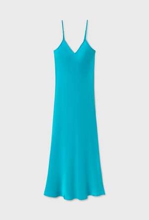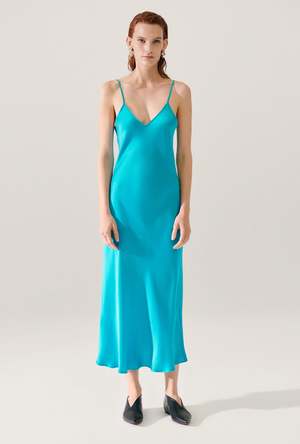 Silk Laundry bias cut slip dress crafted in 100% silk with adjustable straps. Cut on the bias to a regular fit and a mid length hemline. - Material: 100% Silk Sandwashed, 16 momme - Cut on the bias - Matte sheen - Mid-length - Adjustable straps - Metal hardware ring and slider - Internal French seams - OEKO-TEX certified - Fits true to size - Model wears a size medium
