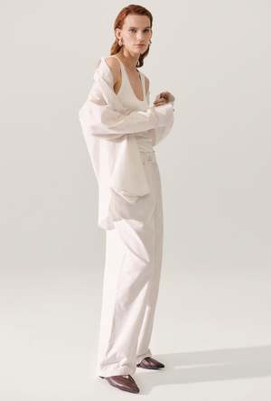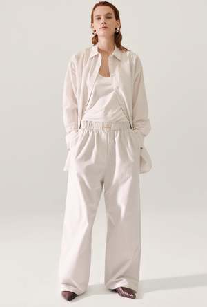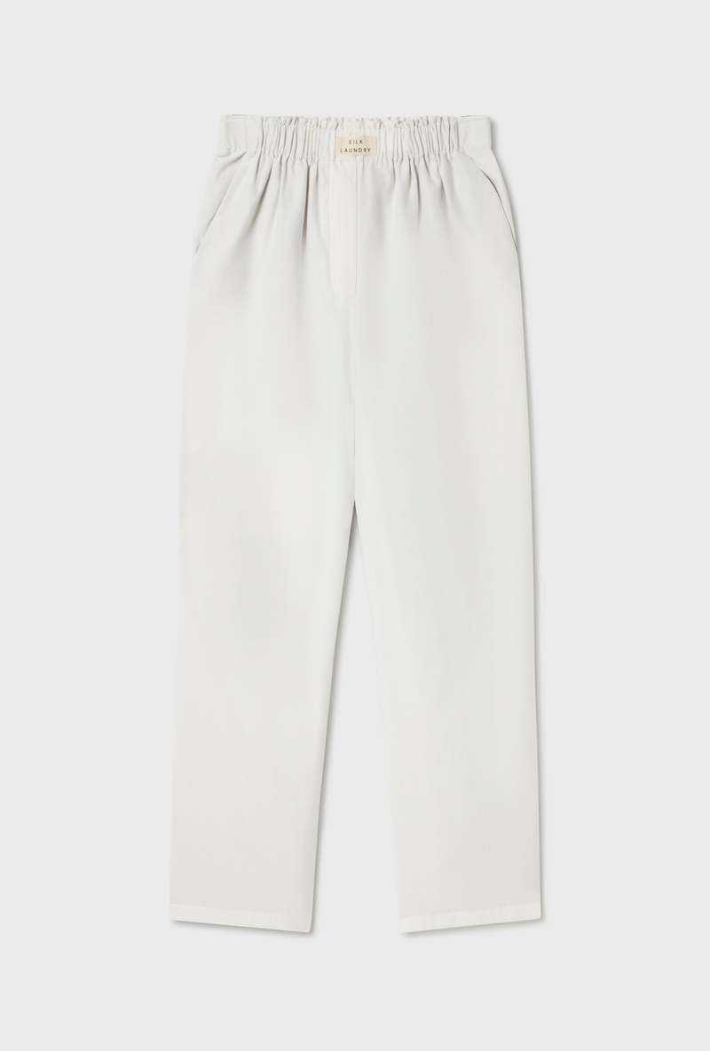 The Cotton Silk Paper Bag Pants feature a straight leg design and elastic waist for a relaxed fit. Complete with side pockets and fully lined for comfort, their construction blends practicality with a modern silhouette. - Material: 30% Silk 70% Cotton, 16 momme - Straight leg - Elastic waist - Side pockets - Fully lined - Internal French seams - Relaxed fit - OEKO-TEX certified - Model wears size medium