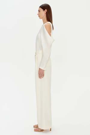 The Novia pant in eggshell is the perfect neutral dress pant. We love pairing it back with the Florentine knit tank but the options are endless for this classic and chic pants. 55% Wool 45% Polyester Made By Simkhai