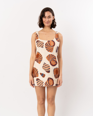 Relaxed linen mini dress featuring a generous silhouette, scooped neckline, and practical hidden side pockets for effortless everyday style. Model is wearing a size Small. Model Measurements: Height: 510.5 / Bust: 34 / Waist: 26 / Hips: 38. Care: 100% cotton. Imported. Dry clean for best results.