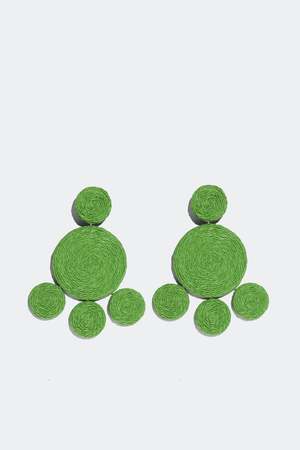 Art decoinspired earrings in Simon Miller's signature Gummy Green colorway. Lightweight, brass plated. Details Model #: S917-9245-71653 Material: 90% Raffia Paper, 8% Iron, 2% Stainless Steel Country of manufacture: Imported Sizing Length: 12 cm Additional Info Art decoinspired earrings in a new colorway and material. Lightweight, brass plated. Model #: S917-9245-91679 Material: 90% Raffia Paper, 8% Iron, 2% Stainless Steel Country of manufacture: Imported Sizing: Length: 12 cm