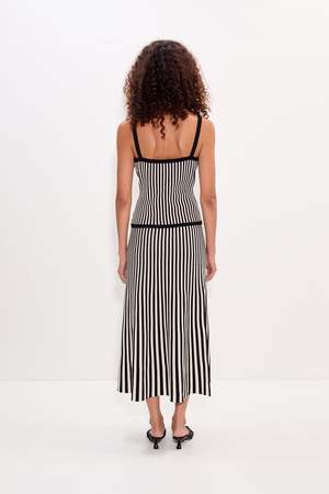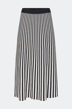 Flattering striped knit midi skirt with an elasticated rib waistband for comfortable wear. Designed with a soft fluted effect that creates an effortless, elongating silhouette. Details Model: W2117-6079-96470 65% viscose, 35% nylon Imported Care Machine wash cold. Do not bleach. Lay flat to dry. Iron on low heat. Sizing True to size.
