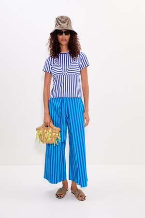 A soft striped cotton jersey t-shirt designed with a gently fitted silhouette and easy stretch. Finished with a trompe loeil bikini top appliqu for a bold, modern touch. Details Model: W3463-4098-96368 95% cotton, 5% spandex Imported Machine wash separately, do not bleach, tumble dry low, iron on low heat.