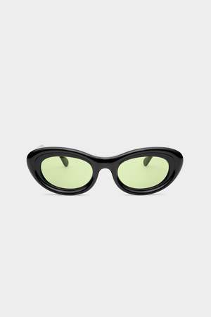 The Mirage Sunglasses by Simon Miller feature curves and bold lines, evoking tropical landscapes with a sense of mystery and escape. This rounded frame includes a branded SM X Delarge signature on the interior. Details: - Model #: S944D-9158-90303 - Acetate construction - One size Imported.