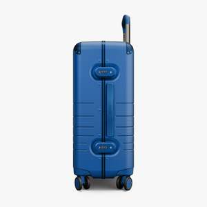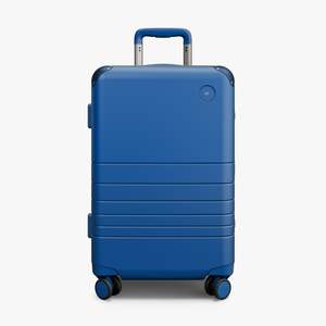A limited-edition expanded carry-on with a zipperless aluminum frame and 360 spinner wheels. Finished with tonal details, TSA locks, soft recycled lining, and an interior compression pad for seamless travel. Includes a silver ion-coated striped laundry bag, two shoe bags, and an exclusive vegan leather luggage tag. PREORDER | SHIPS 12/9 Details Model: S5002M-9296-96635 - Water-resistant polycarbonate hard shell with recycled materials - 360 spinner wheels - Zipperless aluminum frame with corner guards - Adjustable telescopic handle - Color-matched components - Soft anti-microbial lining made from recycled polyester - Vegan leather trim - Two TSA-approved combination locks - Removable compression pad with zip pocket - Includes laundry bag, two shoe bags, and luggage tag Sizing Exterior measurements: 23" 15" 9.5" Interior measurements: 21" 13.9" 37 days trip length Weight: 9.25 lb Capacity: 36 L | Volume: 43 L