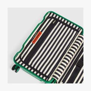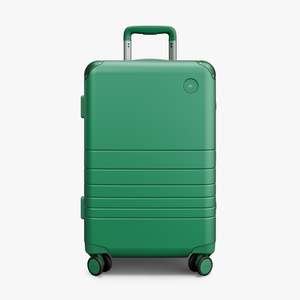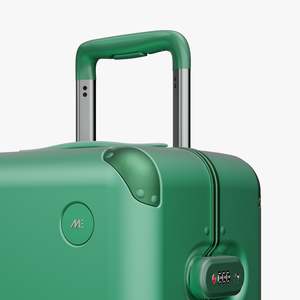 A limited-edition expanded carry-on with a zipperless aluminum frame and 360 spinner wheels. Features tonal details, TSA locks, soft recycled lining, and an interior compression pad for seamless travel. Includes a silver ion-coated striped laundry bag, two shoe bags, and a vegan leather luggage tag. PREORDER | SHIPS 12/9 Details Model: S5002M-9296-55534 - Water-resistant polycarbonate hard shell with recycled materials - 360 spinner wheels - Zipperless aluminum frame with corner guards - Adjustable telescopic handle - Color-matched components - Soft anti-microbial lining made from recycled polyester - Vegan leather trim - Two TSA-approved combination locks - Removable compression pad with zip pocket - Includes laundry bag, two shoe bags, and luggage tag Sizing Exterior measurements: 23" 15" 9.5" Interior measurements: 21" 13.9" 37 days trip length Weight: 9.25 lb Capacity: 36 L | Volume: 43 L