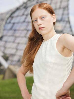 Fitted athletic top with a waffle-textured design and front lining.
