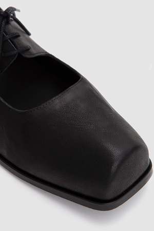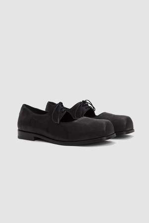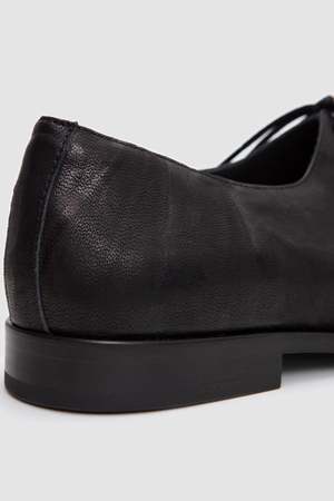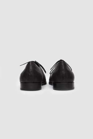 The Theresia Derby is an elegant silhouette which draws inspiration from bygone centuries. The upper is crafted from a single piece of horse hide that shows very slight irregularities, adding to the depth of its appearance. The upper sits atop a leather frame sole and outsole that is stitched with a Blake-stitch construction.