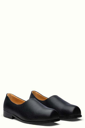 The Hannes Loafer features an upper crafted from a single piece of Italian grained calf leather, pulled over the foot last from the toes to create a naturally smooth toe cap. The interior is lined with soft cow leather for durability and comfort. The upper sits atop a leather frame sole and outsole stitched with Blake-stitch construction. Italian grained calf leather upper. Soft cow leather lining. Cow leather frame sole. Cow leather outsole. Cushioned insole. Blake-stitch construction. Made in Portugal. Colour: Black. Composition: Upper: 100% buffalo calf, Lining: 100% cow, Frame sole: 100% cow.