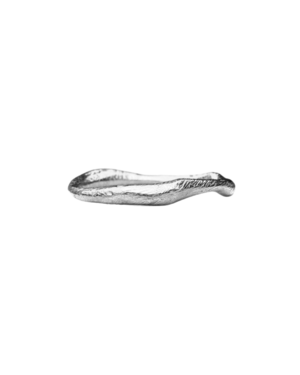 Hand-carved stacking ring featuring a narrow textured band with fern leaf details. Crafted in sterling silver. Made to order.