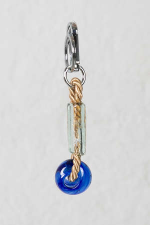 Handmade glass charm by Sisi Joia Made up of vintage Syrian glass sculpture beads, twisted cotton cord and stainless steel carabiner The glass beads are recycled and may have slight imperfections Handmade in Paris France in the Sisi Joia studio