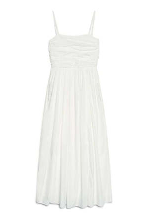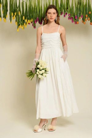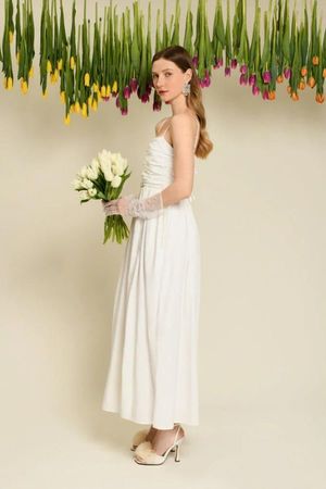 Youre the loveliest of lilies in this soft lyocell midi dress. You adore the pleated bodice and the delicate bead pocket trims. Classic and elegant in appearance, with three bonny bows at the back, you have a lasting impression of sweetness. DETAILS: - Midi dress in a soft lyocell fabric. Regular fit featuring a pleated bodice, complimented with a bead pocket trim. Finished with a side seam pocket. Adjustable straps and ties at the back with a concealed zip fastening. - Main - 60% Lyocell, 40% Cotton. Lining - 65% Viscose, 35% Cupro - Length of the dress is 124 - 130 cm depending on the size SIZE + FIT: - Fits True To Size - Nataliia is 5'10' and wears a size S / US 4 - For more sizing details, please refer to the measurements in the size guide below.