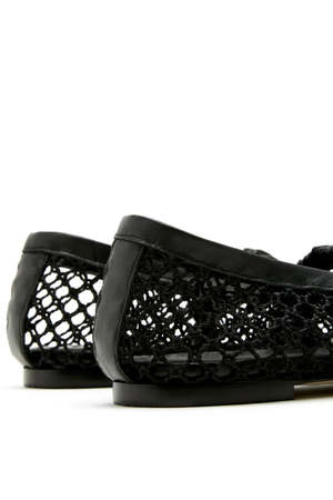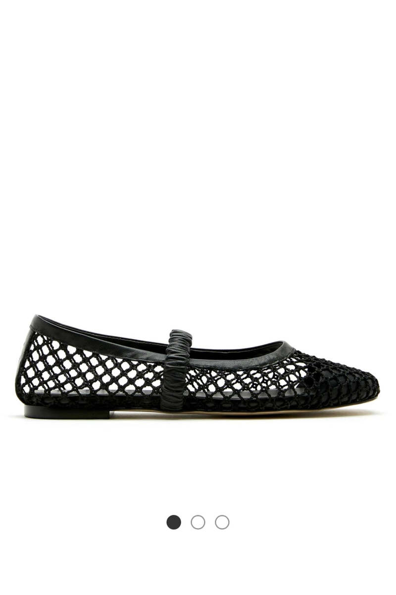 Modelled on a traditional Mary Jane, these ballet flats are reimagined with a contemporary twist. The round-toe upper is crafted from woven leather that creates a delicate netted effect, while an elasticized strap provides comfort and a secure fit. - Raffia upper with leather trim - Thunit sole - Leather footbed - Made in Portugal - Sustainable shoe bag included