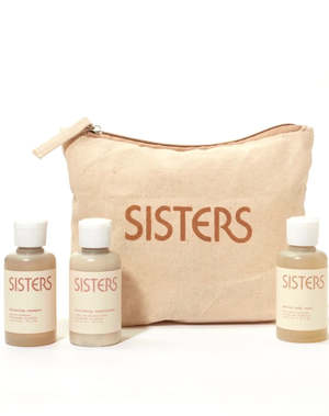 The sisters body beloved travel kit comes with airplane carry-on size bottles along with a slightly oversized pouch - perfectly large enough for adding in all your other essentials while you're away. In addition to being a friendly travel option, its a great way to test out the products before purchasing the full-sized options. Balancing Shampoo (2.6 oz.) Nourishing Conditioner (2.6 oz.) Gentle Body Wash (2.6 oz.) We use 100% post consumer recycled bottles. Fragranced with 100% natural essential oils. Free of preservatives, sulfates, PEGs, silicones, or parabens. Safe for the whole family. Biodegradable and never tested on animals.
