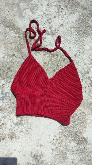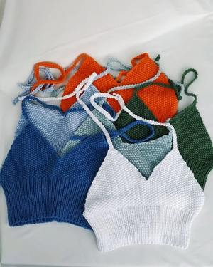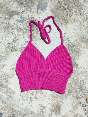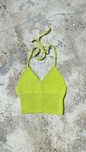 Organic cotton halter-neck top. Hand-knitted with love and care.